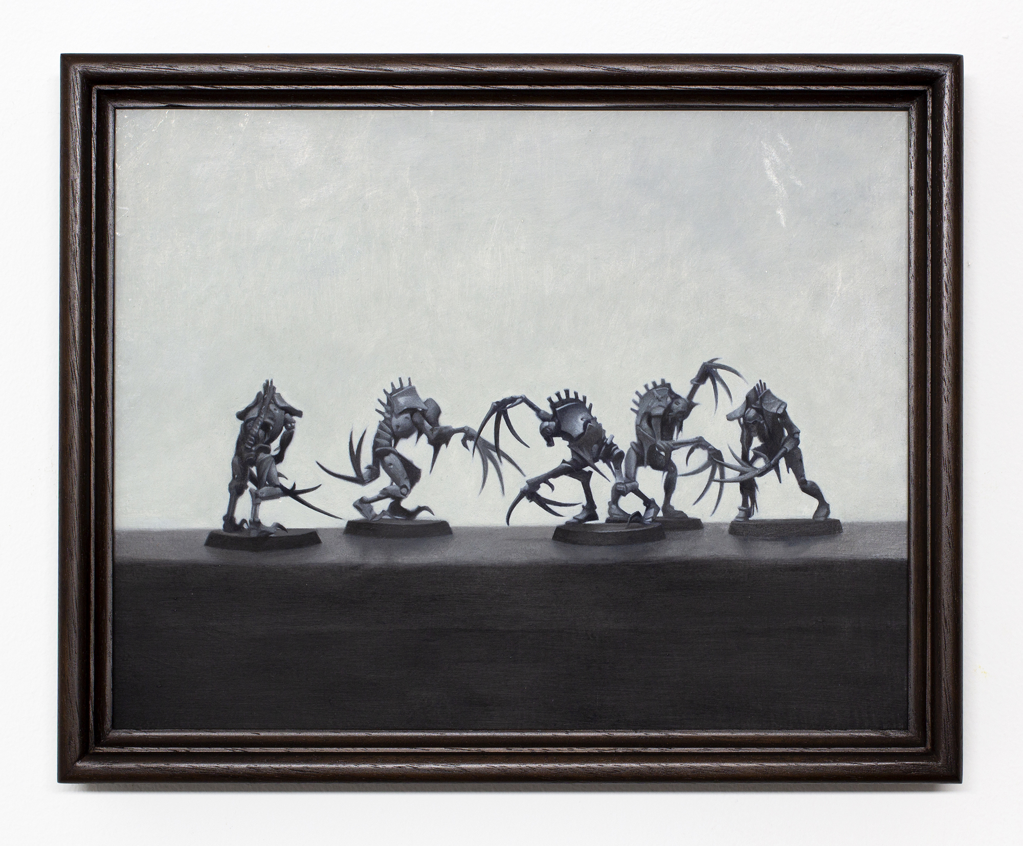 seven high elf spearmen in gradient formation, 2024 Oil on linen over panel 5 ½ × 8 ¾ in. (13.97 × 22.23 cm)