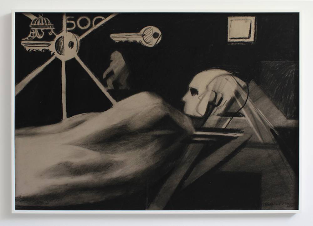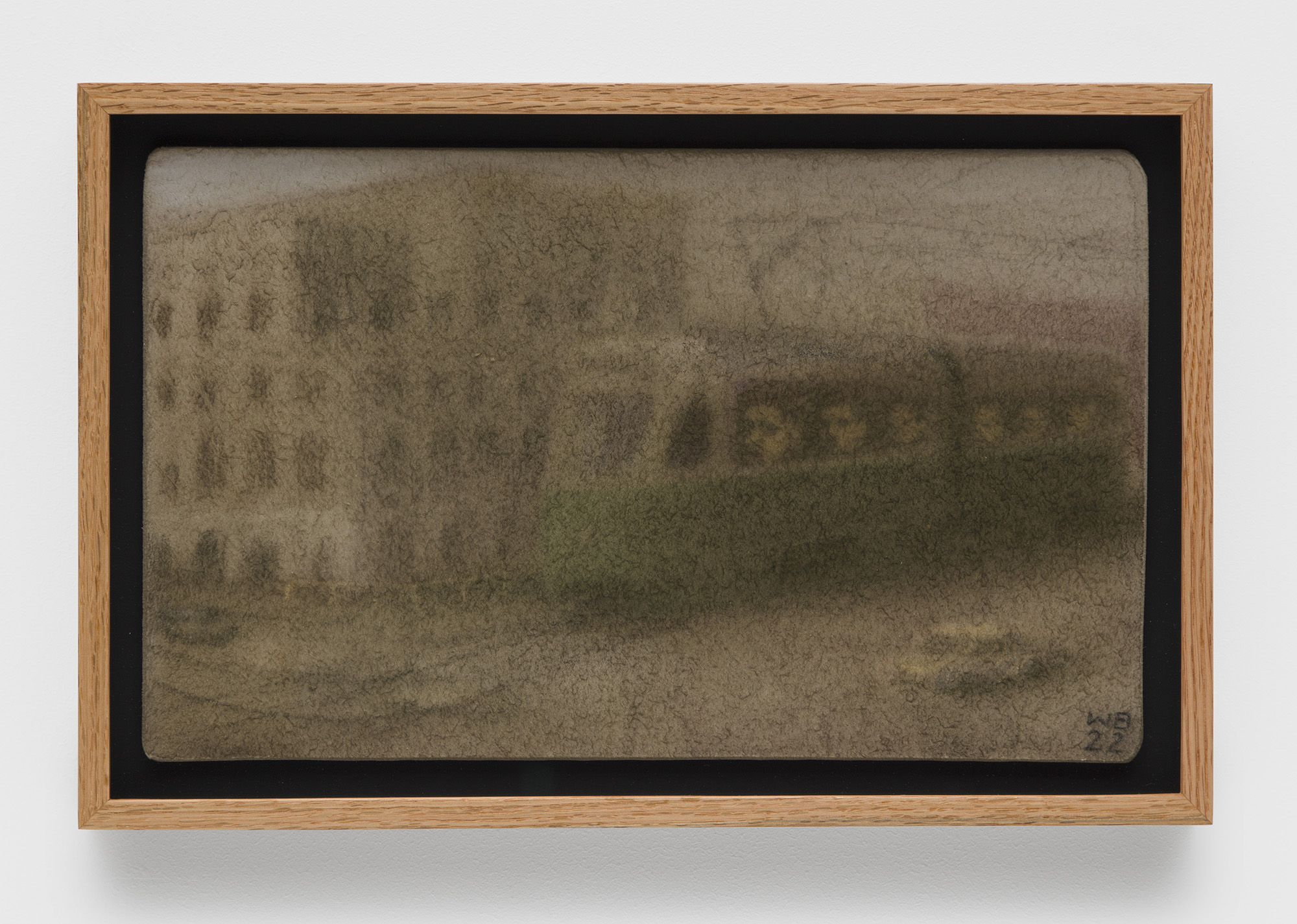 Piatkowo Housing Estate and the Firebugs 2021, Charcoal and crayon on cardboard 10.5 × 21 cm (4 ⅛ × 8 ¼ in.)
