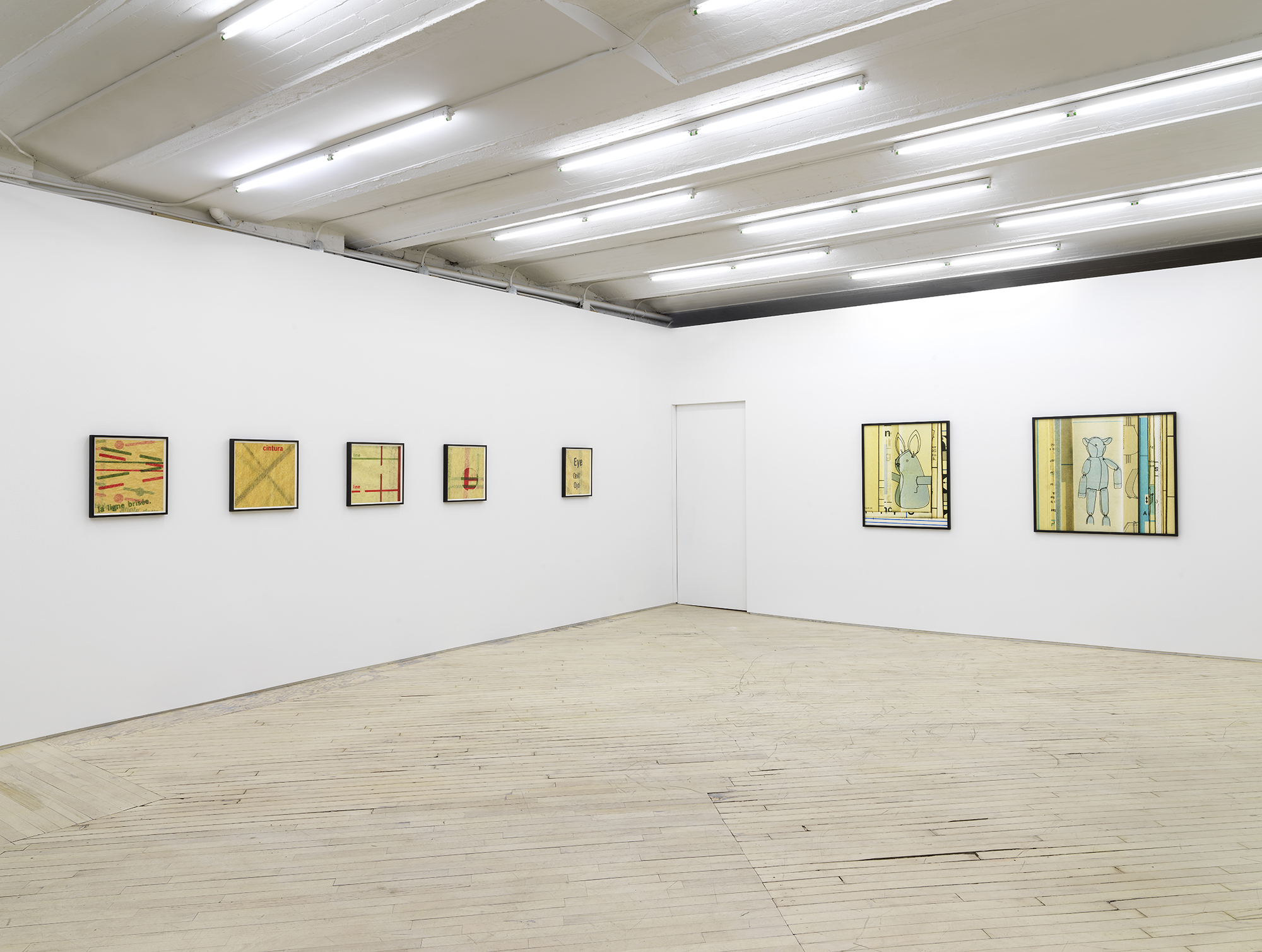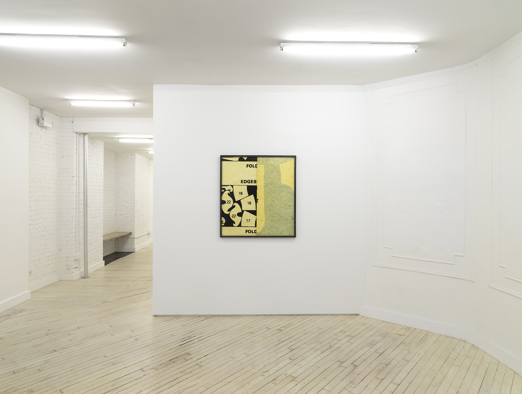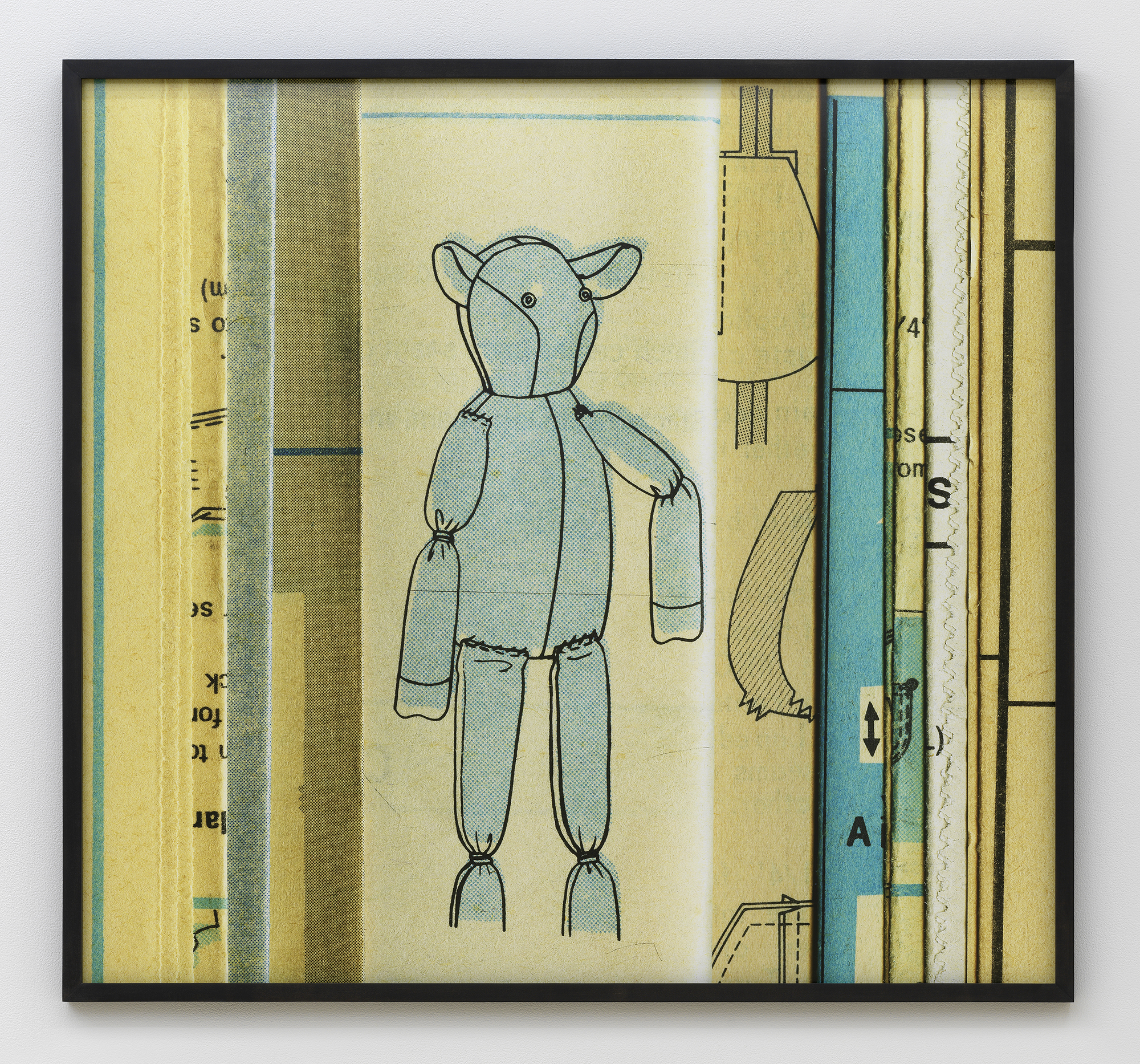 Bureau is pleased to announce our fifth solo exhibition with Erica Baum, A Long Dress. This exhibition debuts Baum’s Patterns, a new series of photographs capturing the textures, contours and words from twentieth century sewing patterns. Baum’s oeuvre over the past twenty years has focused on composing images of found poetry located in the folds of printed material. Her latest subject matter is the paper templates and accompanying booklets which were industrially-produced for the home tailor. The exhibition opens with Edges Fold Fold, one of several large works depicting the diagrams and measuring guides from these illustrated booklets. This work–with its jumble of numbered shapes and staccato list of words–introduces the abstract language and rhythm of the series. In the main gallery, two groups of smaller photographs focus on the gauzy, folded paper templates themselves, capturing concrete poetry in the creases and cut-lines, punctuated by terse directive phrases. Arrows point where to Place or Fold; a suggestive curve is interrupted by the Hem; a bold ‘X’ marks the spot of the Cintura, the Spanish word for waist. These geometric poems hint at the constriction that the diagrammed garments might impose on their wearer. The mannequin pictured in the work Shoulder–the only human form depicted in the exhibition–stares blankly, her body gridded with numbers. Several of these larger images spotlight uncanny, inanimate subjects. A teddy bear-like form in Bunny has its arms stretched wide revealing a lone thread left dangling, the image punctuated by a single inverted word: seam. A possessed-looking rabbit is accompanied by a description of what ails it in Turn Head Right Side Out. It is fitting that Baum chose to title her exhibition after Gertrude Stein’s poem A Long Dress from Tender Buttons. Stein has been an important influence on Baum, and many affinities can be found between their work, from their textual repetitions and rhythms to their observation and appraisal of the mundane. A Long Dress by Stein seems to describe the same variable line that Baum captures. Each relishes the wordplay of a current that both buzzes and dictates, and a line which can contour a waist or parse a phrase. Erica Baum (b. 1961, New York) received her MFA from Yale University in 1994 and her BA in Anthropology from Barnard in 1984. Recent museum exhibitions include The Swindle: Art Between Seeing and Believing, Albright-Knox Art Gallery, Buffalo; Lever le voile, Frac île-de-france, Paris; The Arcades: Contemporary Art and Walter Benjamin, The Jewish Museum, New York; Photo-Poetics: An Anthology, Kunsthalle Berlin and Solomon R. Guggenheim Museum; Reconstructions: Recent Photographs and Video from the Met Collection, The Metropolitan Museum of Art, New York. Recent solo and two-person exhibitions include Naked Eye Nature Morte, Galerie Crevecoeur, Paris; AAa:Quien, Erica Baum & Libby Rothfeld, Bureau, New York; The Following Information, Bureau, New York; Stanzas, Galerie Crevecoeur, Paris. Selected biennials include; AGORA 4th Athens Biennale, Athens, 2013 and the 30th Bienal de São Paulo: The Imminence of Poetics, São Paulo, Brazil, 2012. Her work is held in the public collections of the Whitney Museum of American Art, New York; Solomon R. Guggenheim Museum, New York; The Metropolitan Museum of Art, New York; Albright-Knox Art Gallery, Buffalo, New York; Centre National des Arts Plastiques, Paris; FRAC Ile de France, Paris; and the Yale Art Gallery, New Haven, Connecticut.