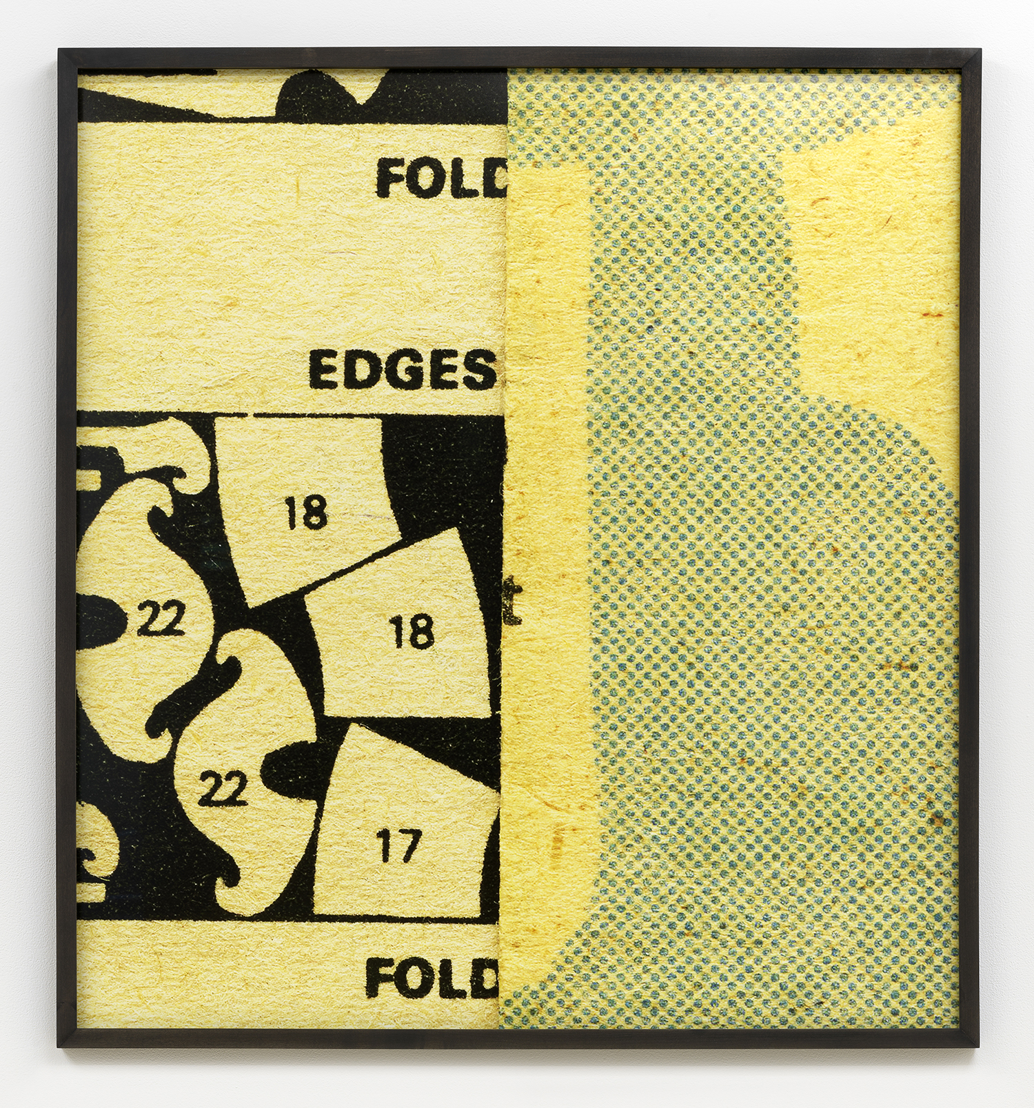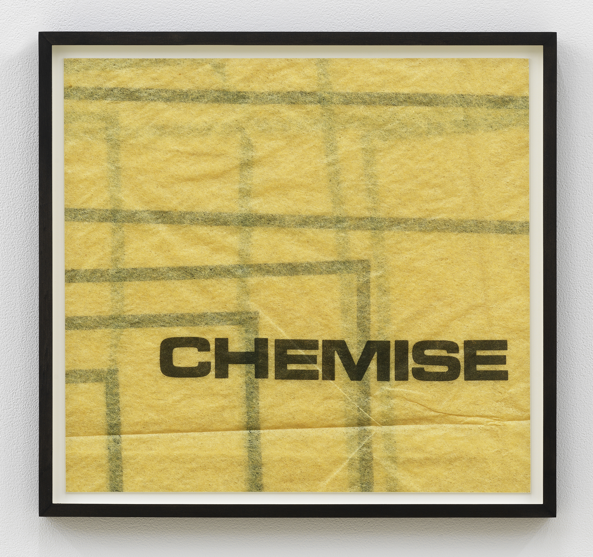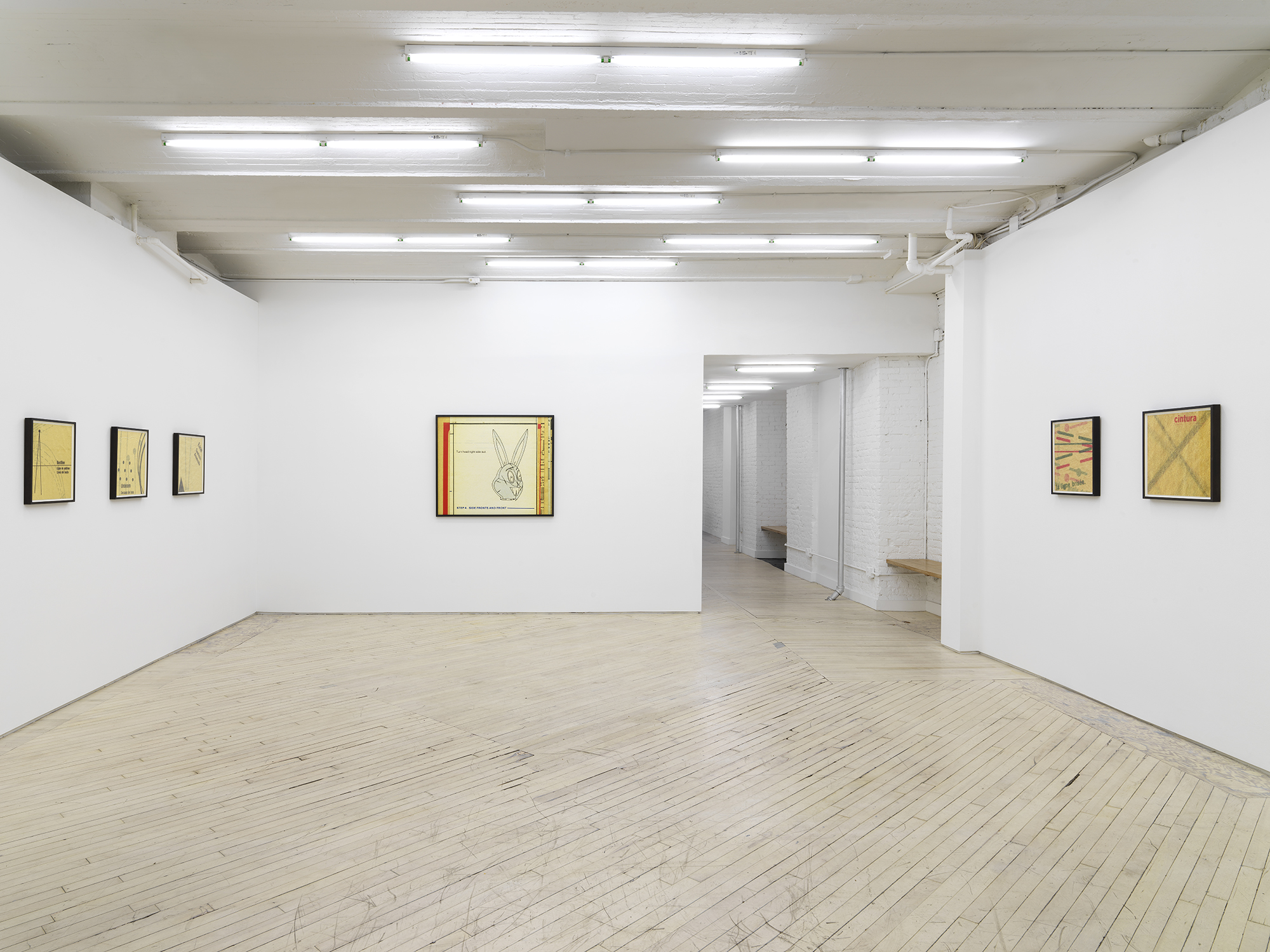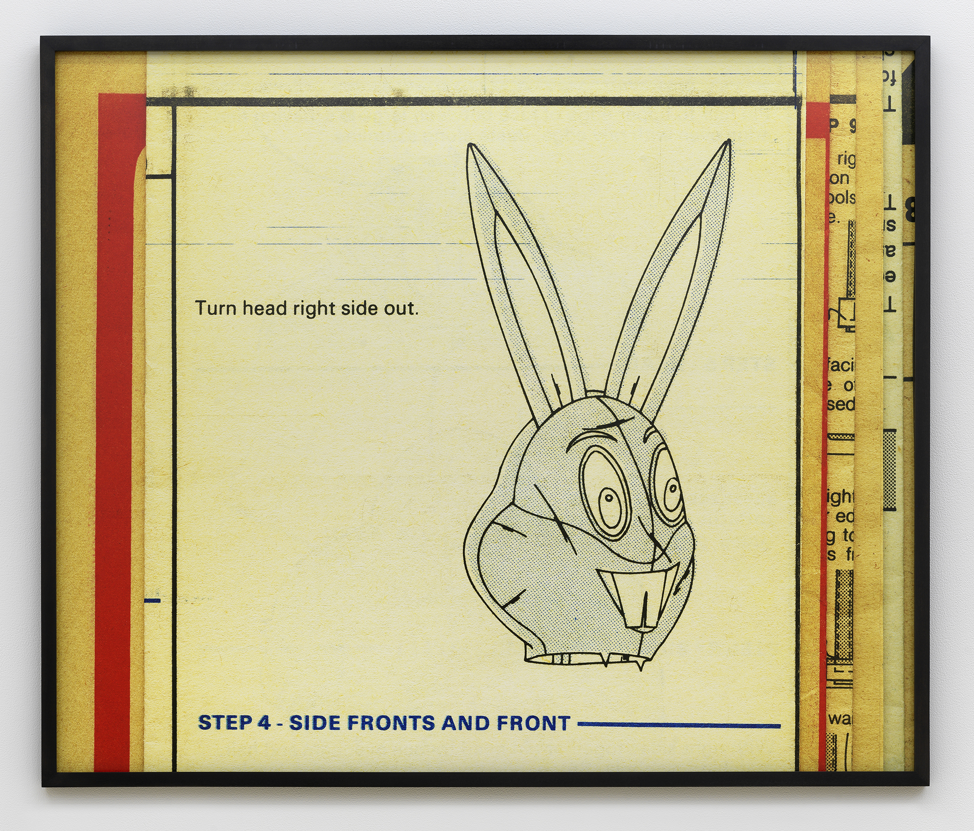 Bureau is pleased to announce our fifth solo exhibition with Erica Baum, A Long Dress. This exhibition debuts Baum’s Patterns, a new series of photographs capturing the textures, contours and words from twentieth century sewing patterns. Baum’s oeuvre over the past twenty years has focused on composing images of found poetry located in the folds of printed material. Her latest subject matter is the paper templates and accompanying booklets which were industrially-produced for the home tailor. The exhibition opens with Edges Fold Fold, one of several large works depicting the diagrams and measuring guides from these illustrated booklets. This work–with its jumble of numbered shapes and staccato list of words–introduces the abstract language and rhythm of the series. In the main gallery, two groups of smaller photographs focus on the gauzy, folded paper templates themselves, capturing concrete poetry in the creases and cut-lines, punctuated by terse directive phrases. Arrows point where to Place or Fold; a suggestive curve is interrupted by the Hem; a bold ‘X’ marks the spot of the Cintura, the Spanish word for waist. These geometric poems hint at the constriction that the diagrammed garments might impose on their wearer. The mannequin pictured in the work Shoulder–the only human form depicted in the exhibition–stares blankly, her body gridded with numbers. Several of these larger images spotlight uncanny, inanimate subjects. A teddy bear-like form in Bunny has its arms stretched wide revealing a lone thread left dangling, the image punctuated by a single inverted word: seam. A possessed-looking rabbit is accompanied by a description of what ails it in Turn Head Right Side Out. It is fitting that Baum chose to title her exhibition after Gertrude Stein’s poem A Long Dress from Tender Buttons. Stein has been an important influence on Baum, and many affinities can be found between their work, from their textual repetitions and rhythms to their observation and appraisal of the mundane. A Long Dress by Stein seems to describe the same variable line that Baum captures. Each relishes the wordplay of a current that both buzzes and dictates, and a line which can contour a waist or parse a phrase. Erica Baum (b. 1961, New York) received her MFA from Yale University in 1994 and her BA in Anthropology from Barnard in 1984. Recent museum exhibitions include The Swindle: Art Between Seeing and Believing, Albright-Knox Art Gallery, Buffalo; Lever le voile, Frac île-de-france, Paris; The Arcades: Contemporary Art and Walter Benjamin, The Jewish Museum, New York; Photo-Poetics: An Anthology, Kunsthalle Berlin and Solomon R. Guggenheim Museum; Reconstructions: Recent Photographs and Video from the Met Collection, The Metropolitan Museum of Art, New York. Recent solo and two-person exhibitions include Naked Eye Nature Morte, Galerie Crevecoeur, Paris; AAa:Quien, Erica Baum & Libby Rothfeld, Bureau, New York; The Following Information, Bureau, New York; Stanzas, Galerie Crevecoeur, Paris. Selected biennials include; AGORA 4th Athens Biennale, Athens, 2013 and the 30th Bienal de São Paulo: The Imminence of Poetics, São Paulo, Brazil, 2012. Her work is held in the public collections of the Whitney Museum of American Art, New York; Solomon R. Guggenheim Museum, New York; The Metropolitan Museum of Art, New York; Albright-Knox Art Gallery, Buffalo, New York; Centre National des Arts Plastiques, Paris; FRAC Ile de France, Paris; and the Yale Art Gallery, New Haven, Connecticut.