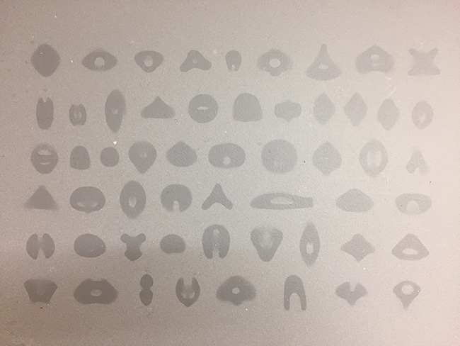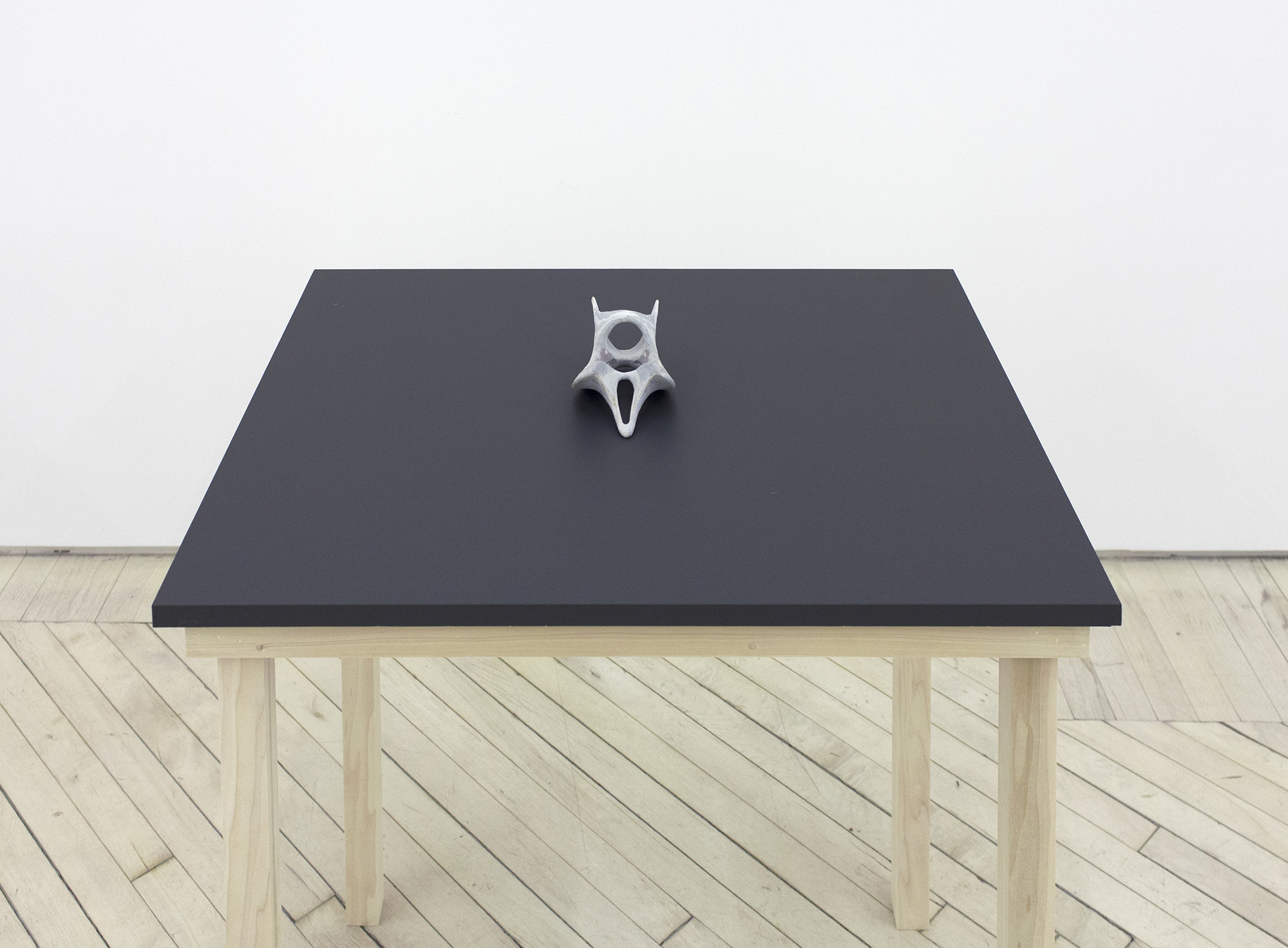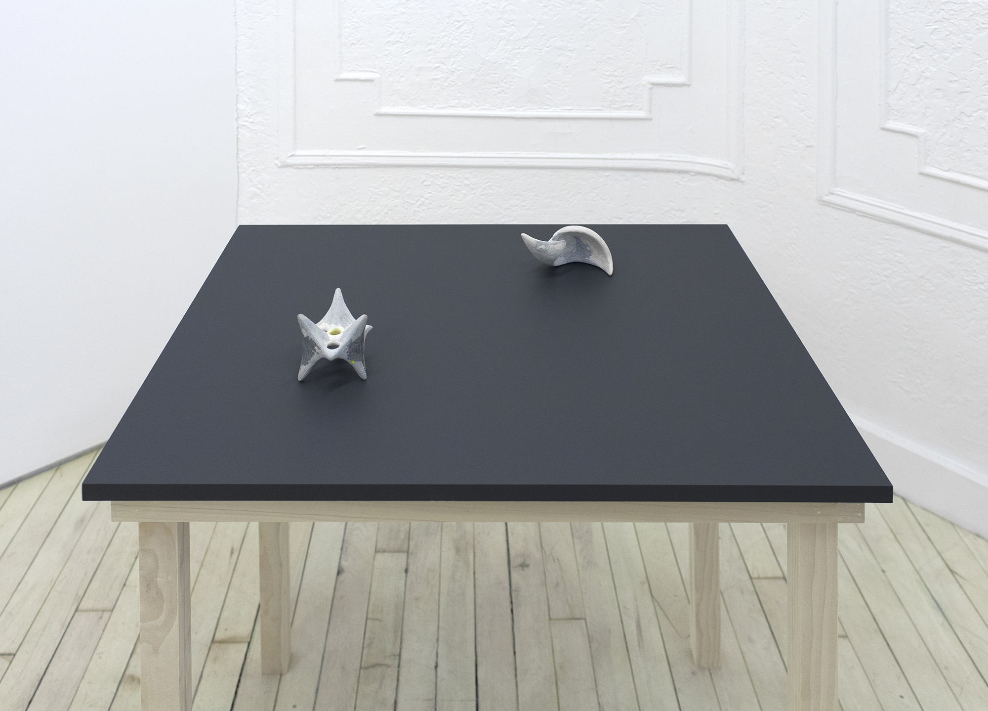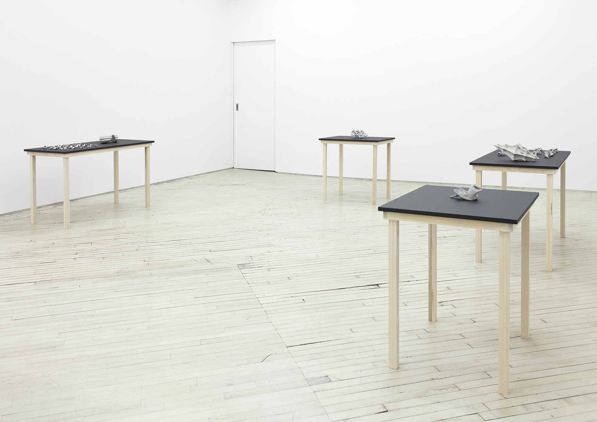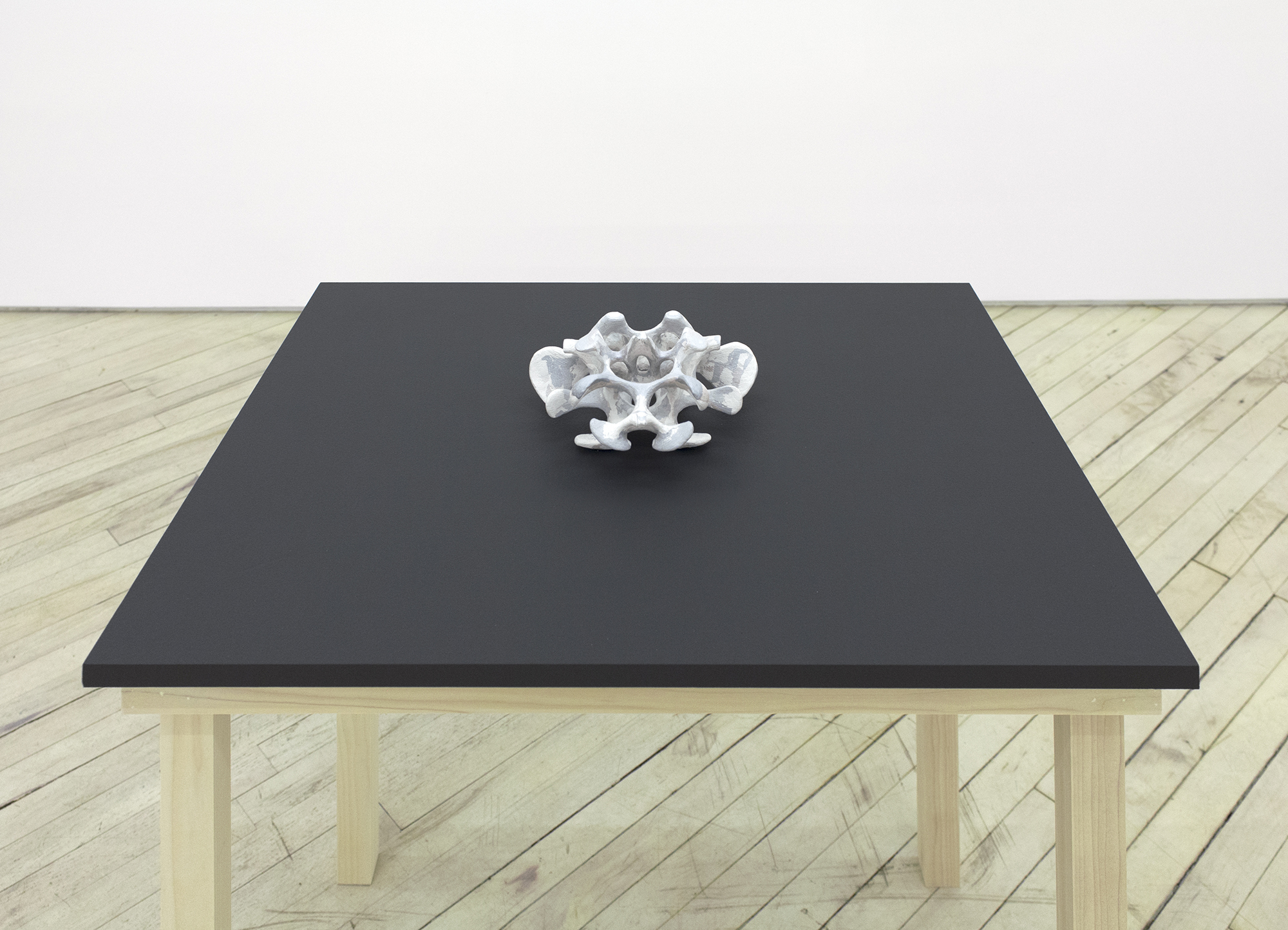 For nearly two decades Matt Hoyt has been shaping a bevy of hand-made objects out of various clays and putties. The majority of his works are very small, shaped by devoted hands, subtly surfaced and worked over extensive periods of time. The pieces seem to hold a locked potential, willed into a kernel of physicality by the artist’s concentrated mental attention. Over the last two years he has seldom started a work from scratch, instead he refers back to a dense archive of previously initiated objects which exist in various states of completion. The reason for this, other than a simple desire to finish what was started, is a deliberate attempt to introduce further complexity into his process: tangling each object’s story through a daily activity of cutting, mending, scraping and filling. Sometimes returning to a piece years later, the original intention may be completely lost on the artist, requiring him to listen and respond only to the metaphysical history encoded in the form to prompt the succeeding steps. The works inhabit a state between the recognizable and peculiar, and their diminutive size begs a close look, imposing an intimate experience of a flickering between familiarity and strangeness. They might resemble organic forms such as vertebrae, exoskeletons, mollusks and sea pods or inorganic things like rocks, stone-age tools and architectural miniatures. The larger forms stand solemnly alone, while smaller forms cohere in arrangements of many: a multitude of innies and outies, slopes and spikes. These arrays imply a kind of animation from one piece to the next: an eruption of minute alterations that echo the artist’s practice. The adjustments imprint a complex time signature onto each piece, as a slow geological evolution washes over the work.