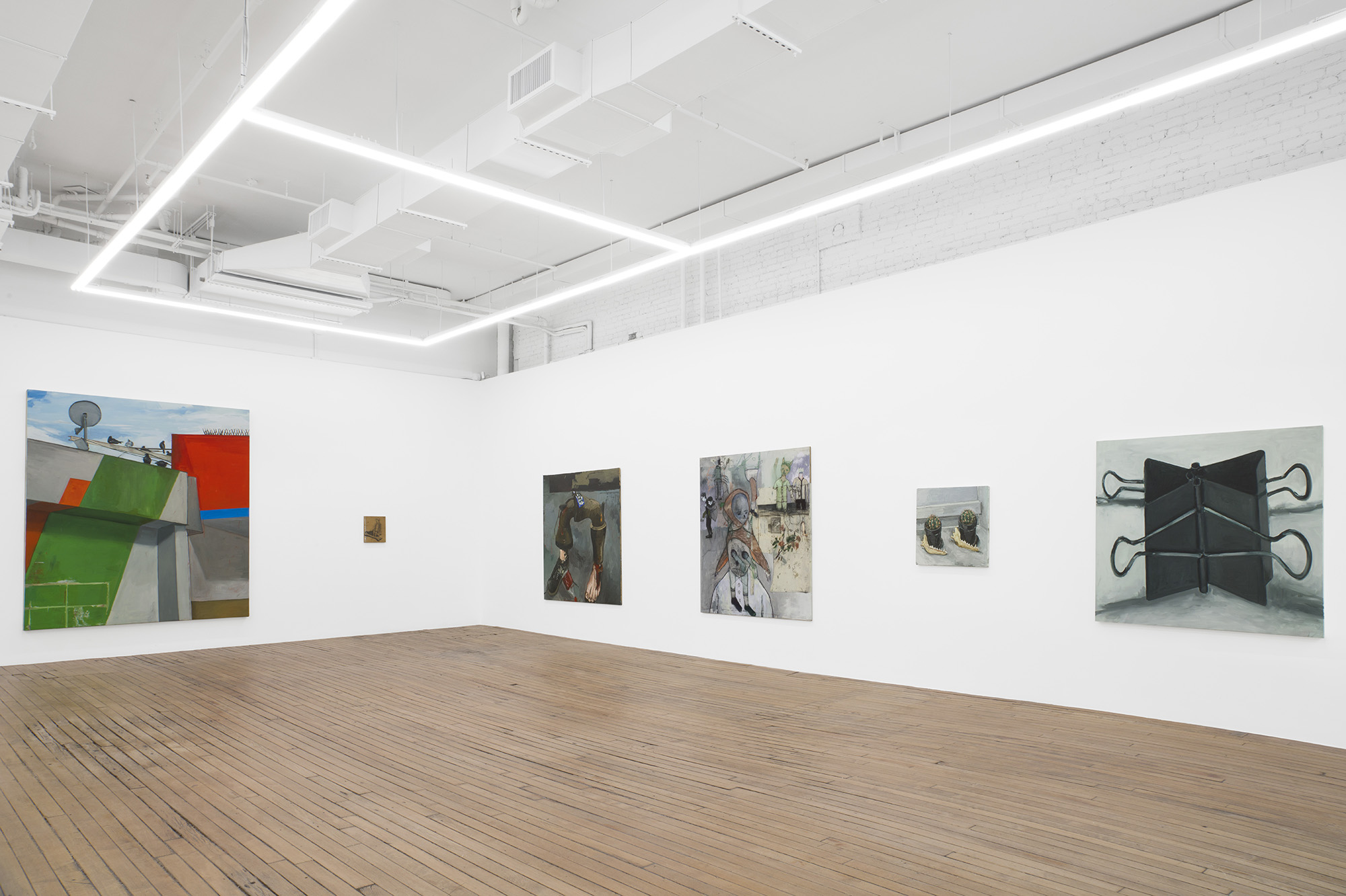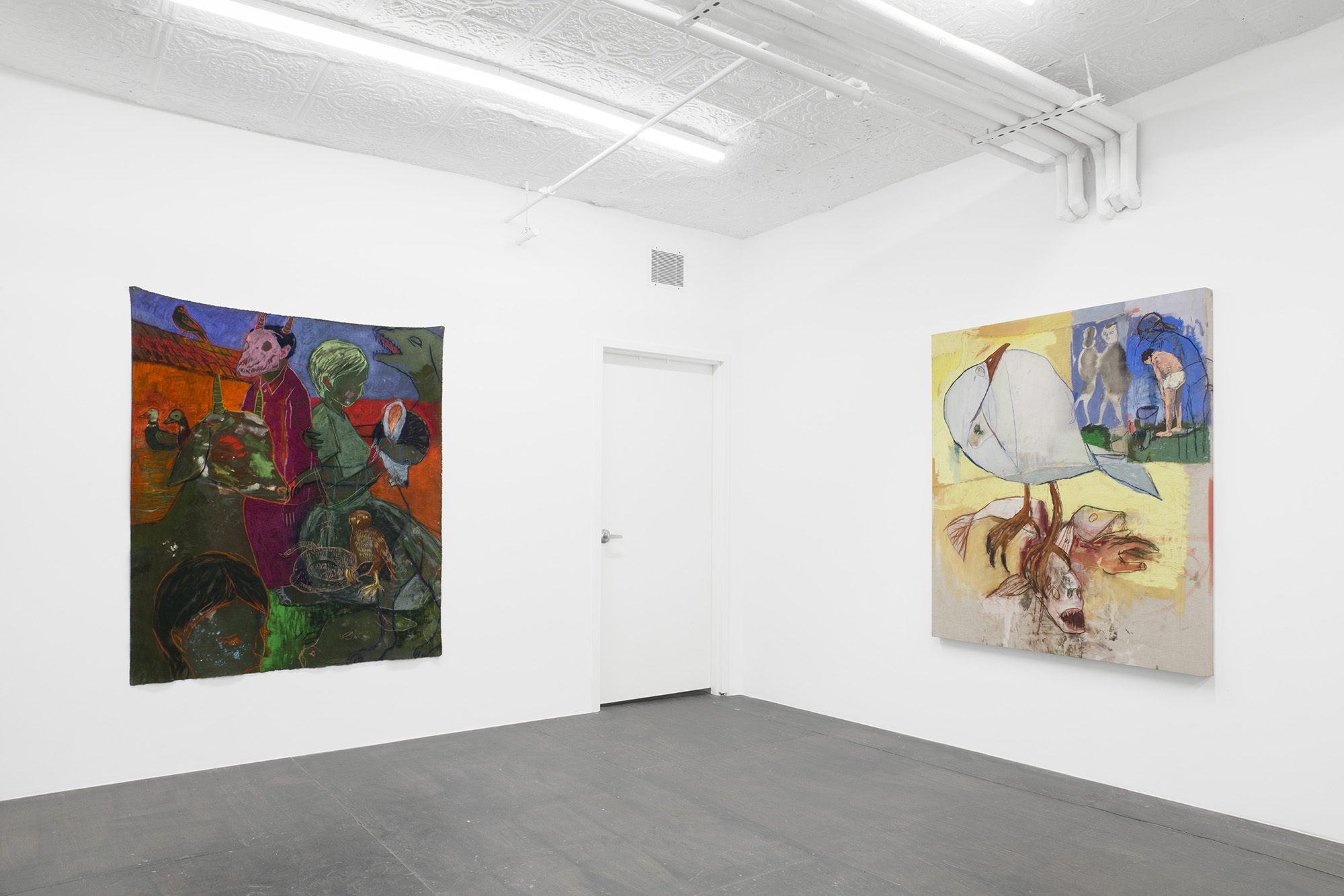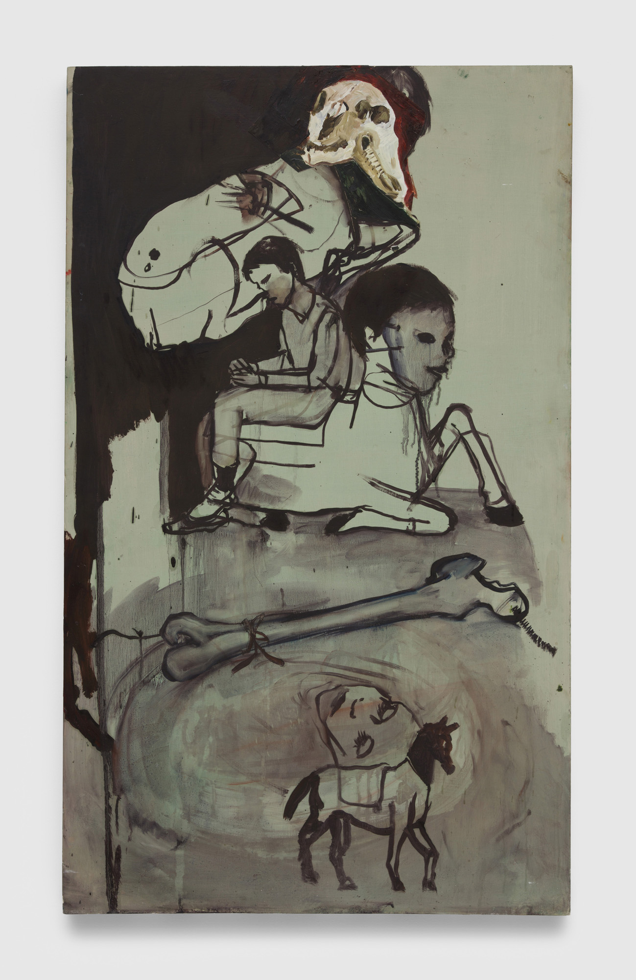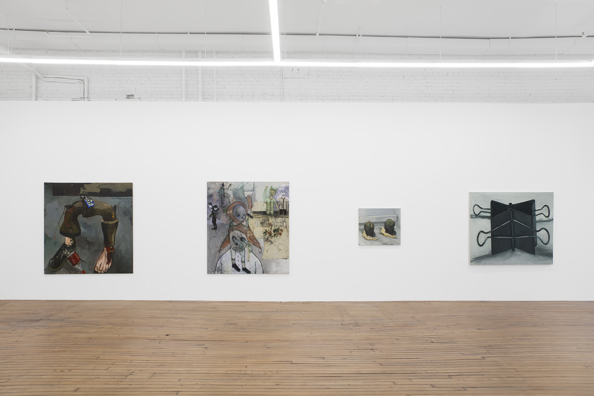 The exhibition, like Berliner’s oeuvre, has an effusive heterogeneity. Paintings from observation are complemented by more fragmented and disquieting scenes, featuring ensembles of creatures and objects. His works offer a gritty, sometimes fantastical realism. Bodies—parts and whole, human and animal—mingle and intersect with inanimate objects. Even his more austere depictions of everyday objects hold a striking tension. Some works may evoke the gruesome intensity of Goya or Beckmann. However, there is a humanist sensitivity to even the darkest scenes. Many reflect a macabre reverie, like the dark whimsy of children’s fairy tales. Berliner finds inspiration everywhere, even in his surfaces: sometimes he will build a line from the trace of wood grain or along the edge of a discarded textile on the studio wall. Negative expanses of color and form give way to new silhouettes, appearing out of the abstract space. Berliner offers a complex vision, unbounded by the concrete world, ever attuned to the way lived experience morphs into memory and mingles freely with imagination.