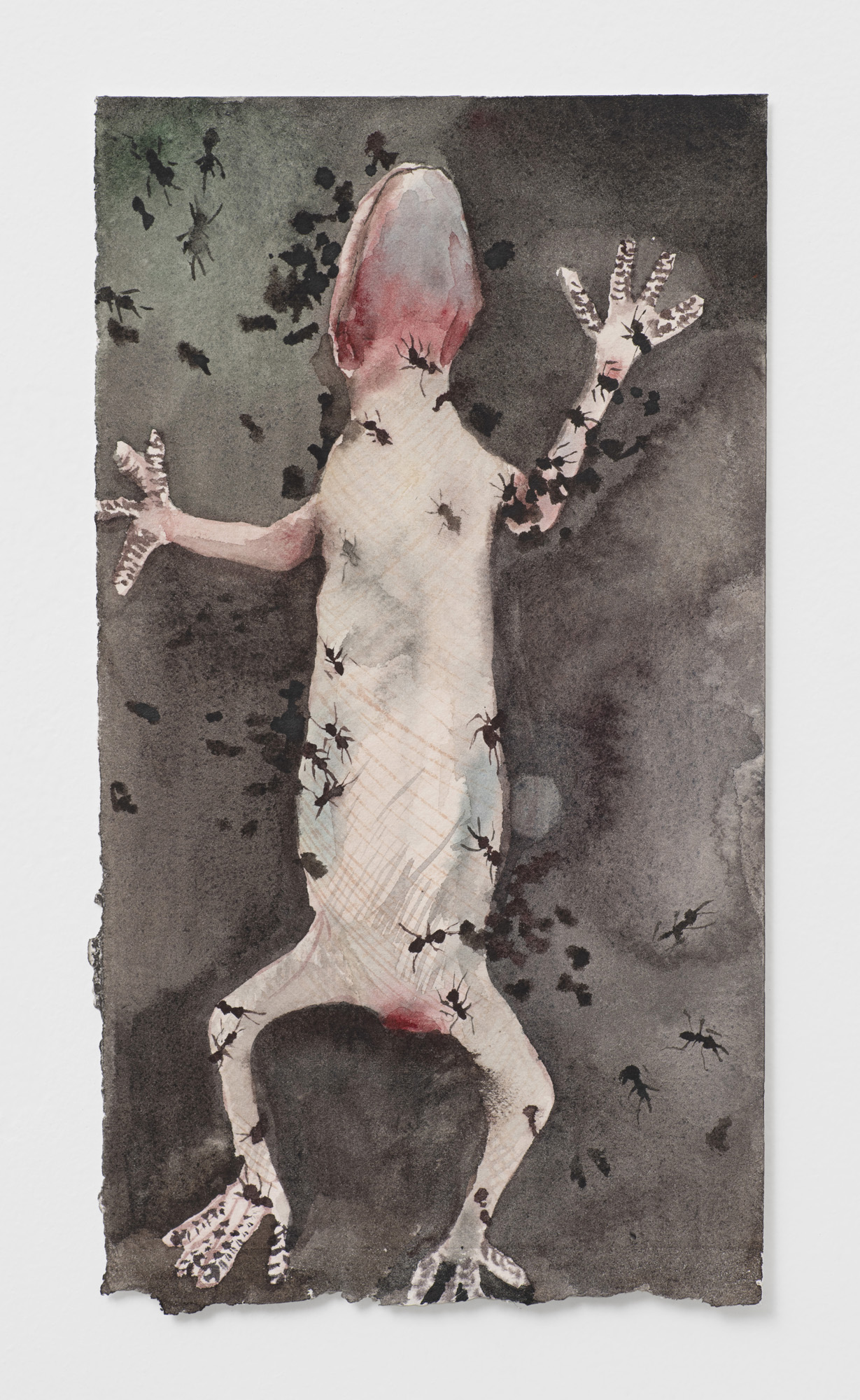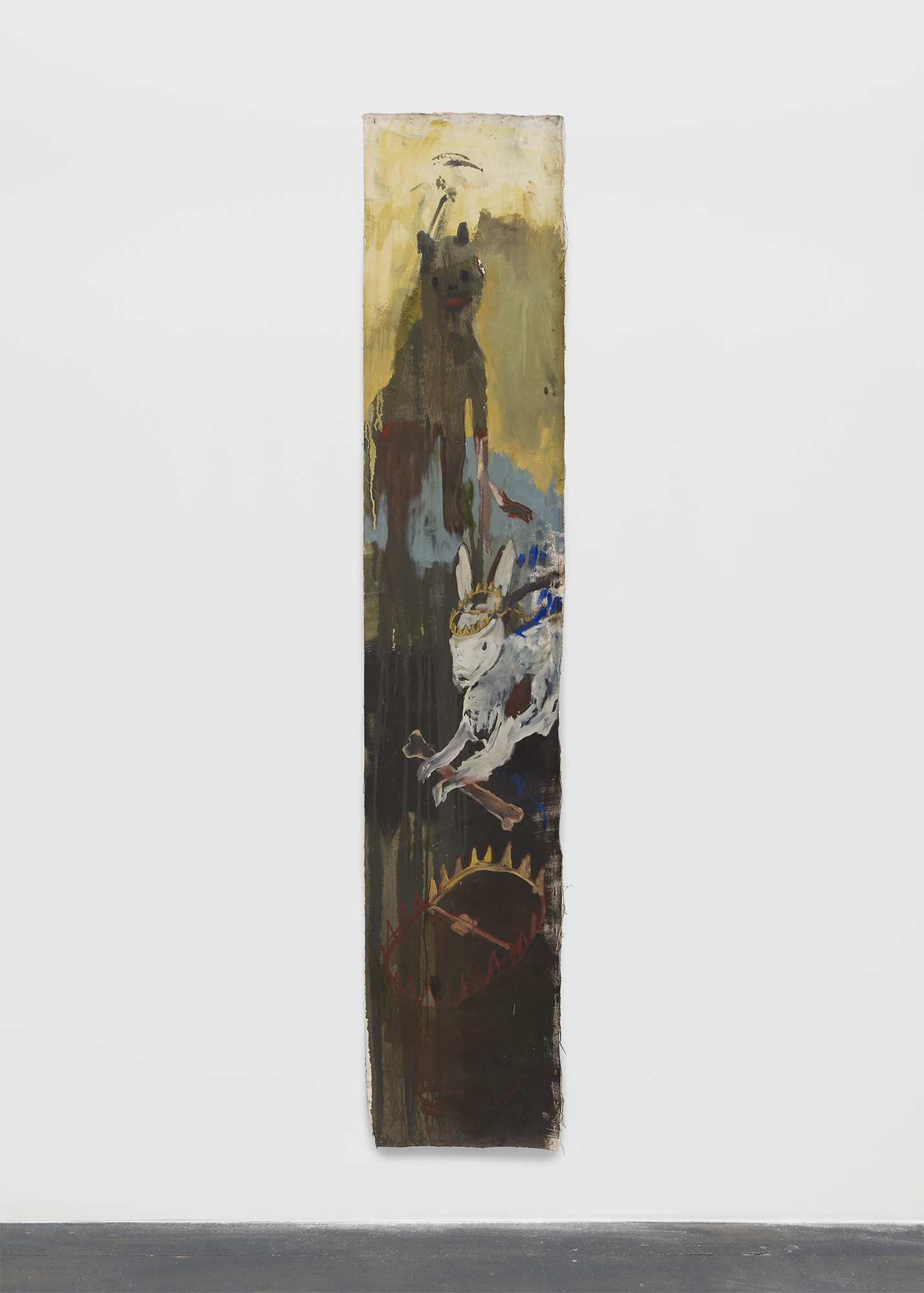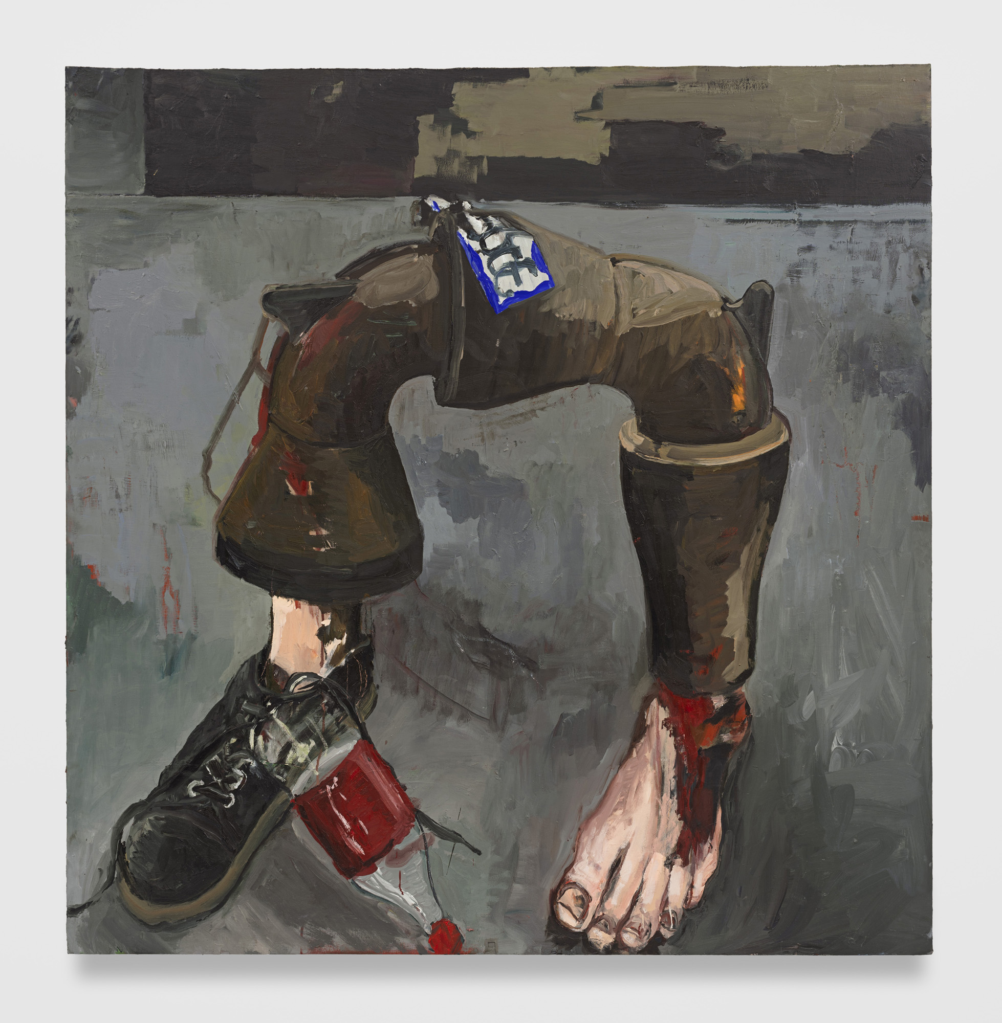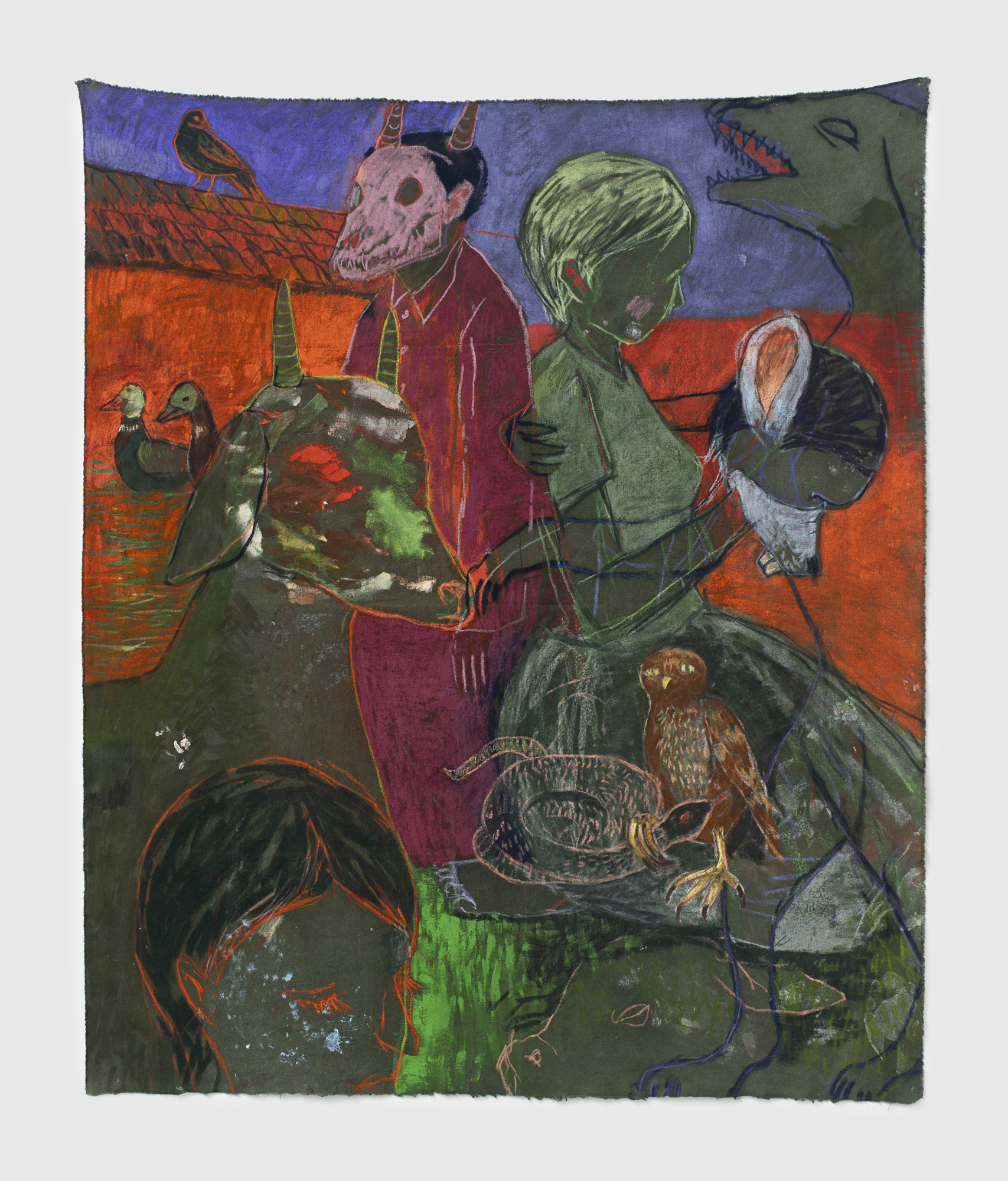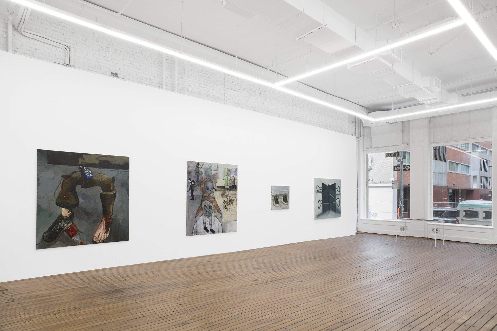 The exhibition, like Berliner’s oeuvre, has an effusive heterogeneity. Paintings from observation are complemented by more fragmented and disquieting scenes, featuring ensembles of creatures and objects. His works offer a gritty, sometimes fantastical realism. Bodies—parts and whole, human and animal—mingle and intersect with inanimate objects. Even his more austere depictions of everyday objects hold a striking tension. Some works may evoke the gruesome intensity of Goya or Beckmann. However, there is a humanist sensitivity to even the darkest scenes. Many reflect a macabre reverie, like the dark whimsy of children’s fairy tales. Berliner finds inspiration everywhere, even in his surfaces: sometimes he will build a line from the trace of wood grain or along the edge of a discarded textile on the studio wall. Negative expanses of color and form give way to new silhouettes, appearing out of the abstract space. Berliner offers a complex vision, unbounded by the concrete world, ever attuned to the way lived experience morphs into memory and mingles freely with imagination.