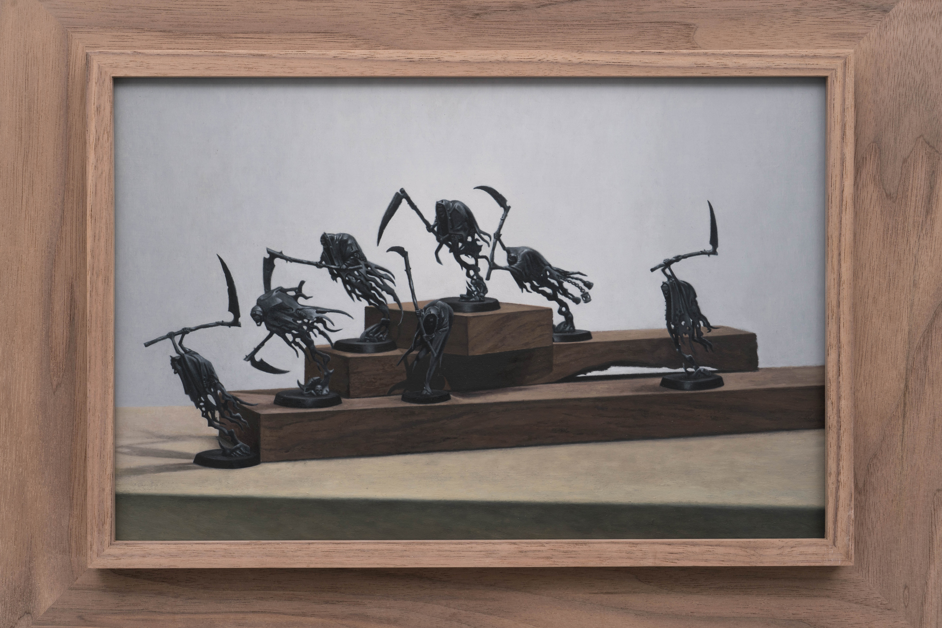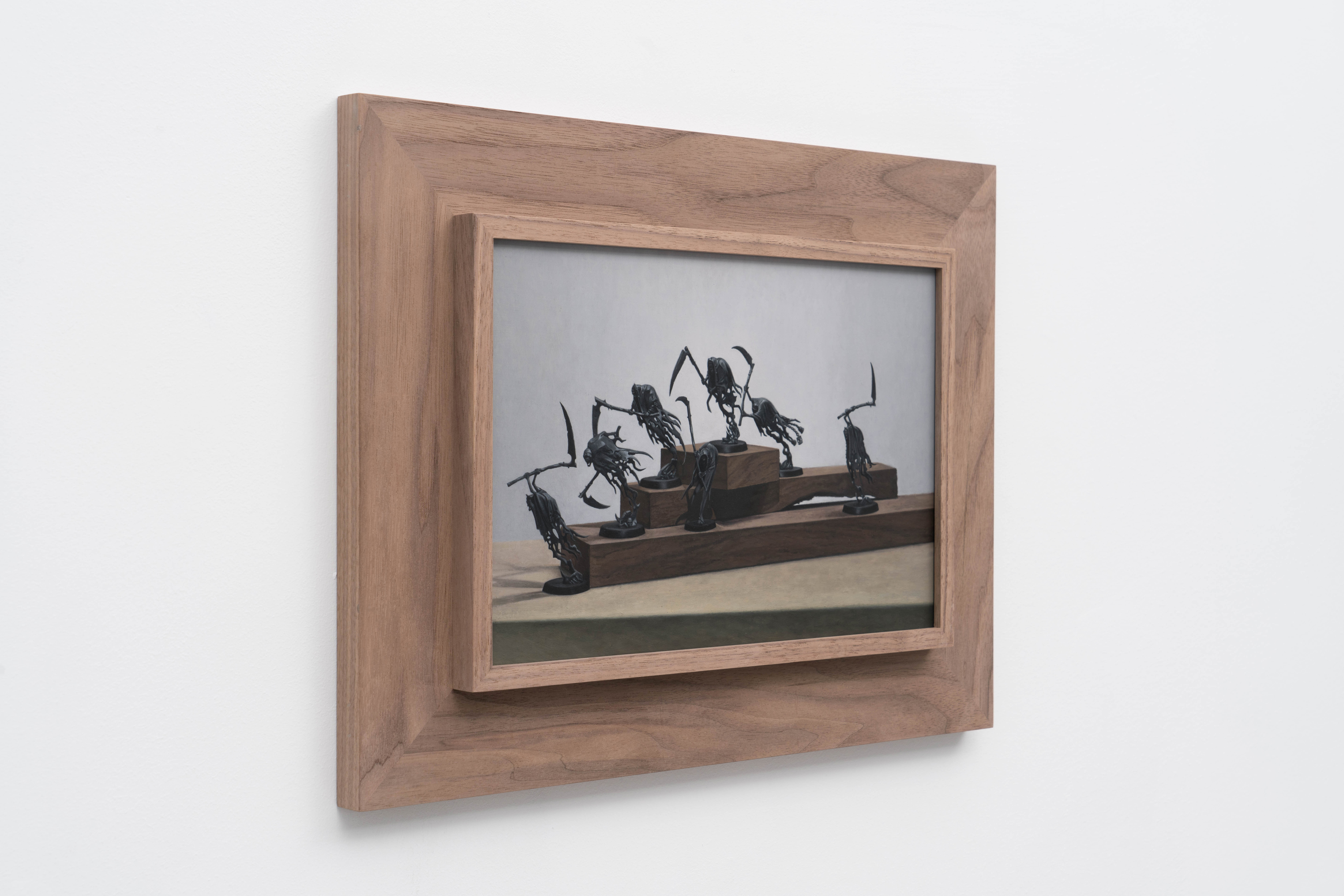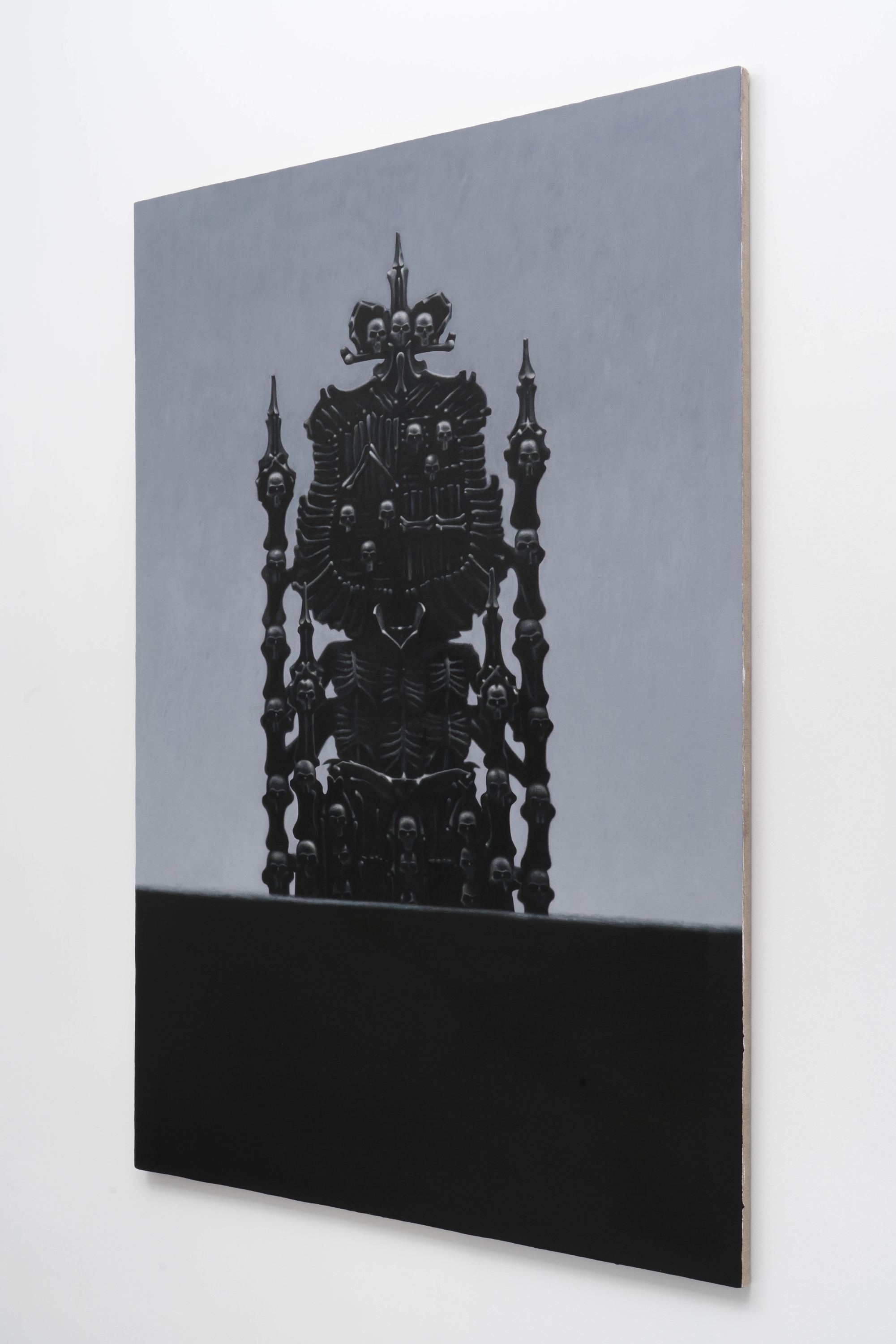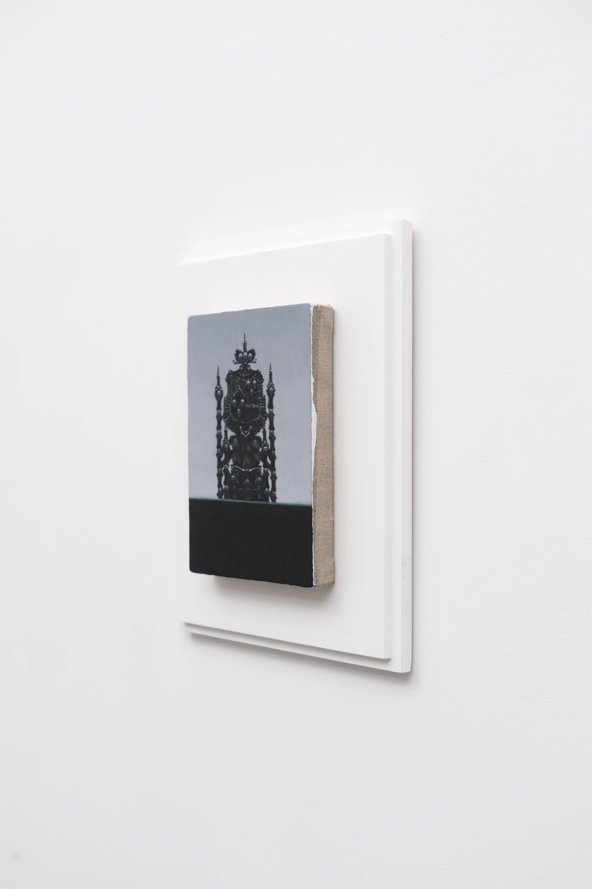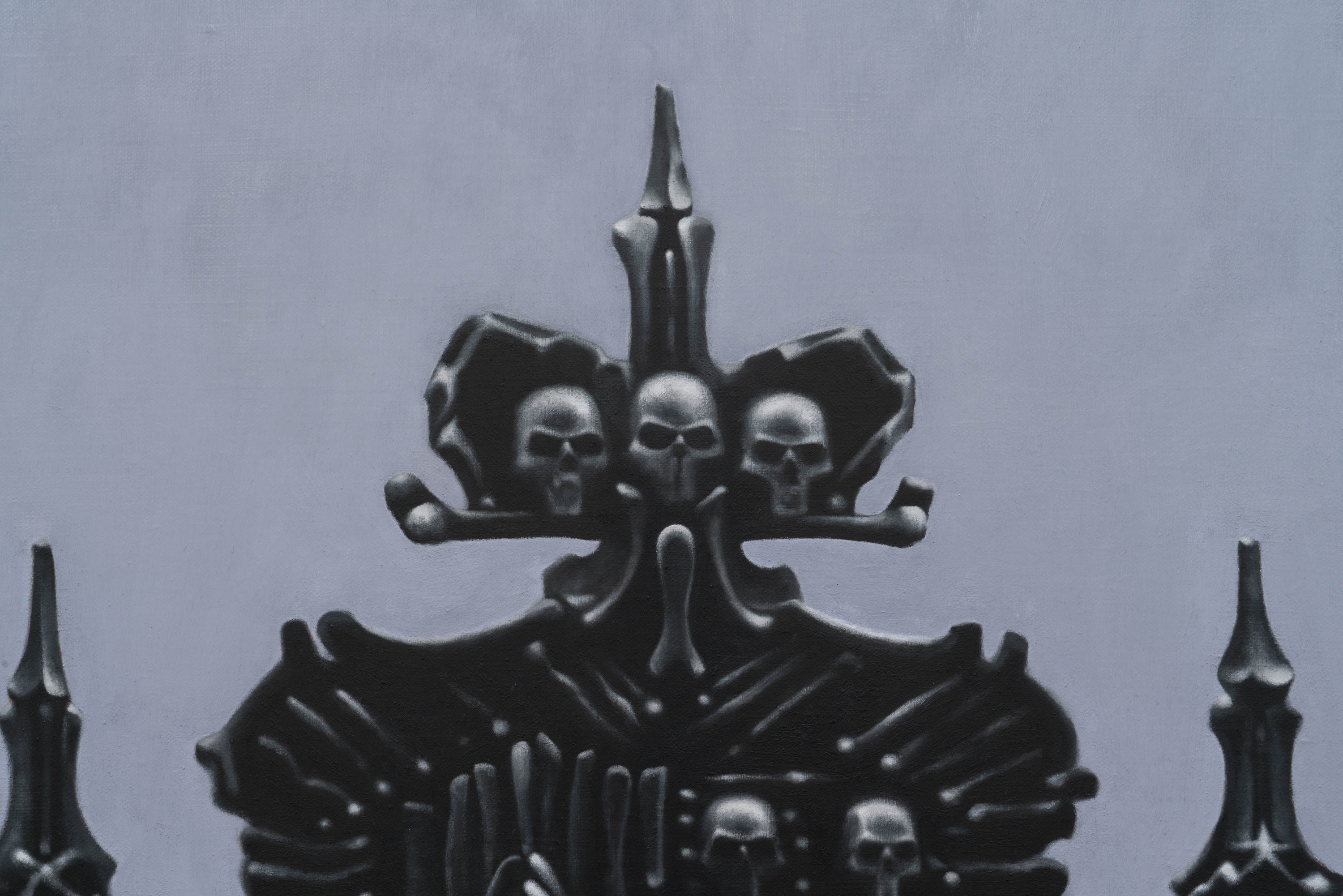 seat of power; charnel throne (1:1), 2024, Oil on linen over panel, artist’s frame, 11 ⅛ × 9 ⅛ in. (28.26 × 23.18 cm)