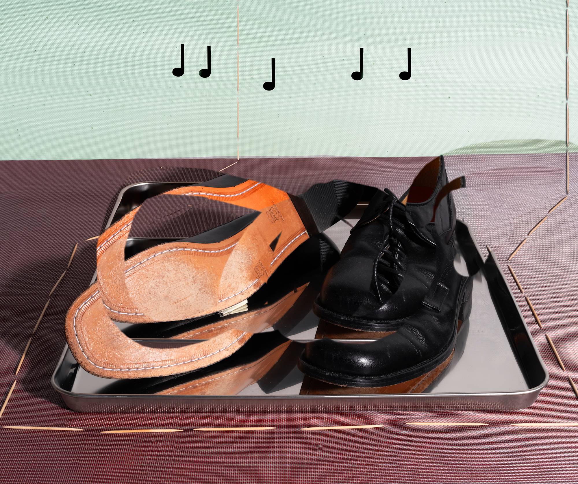 Lucas Blalock, F/D/u/a/n/n/e/c/r/I/a/n/l/g Shoes, 2025, Archival inkjet print, 72 × 86 in. (182.88 × 218.44 cm), Edition 1/1 + I AP