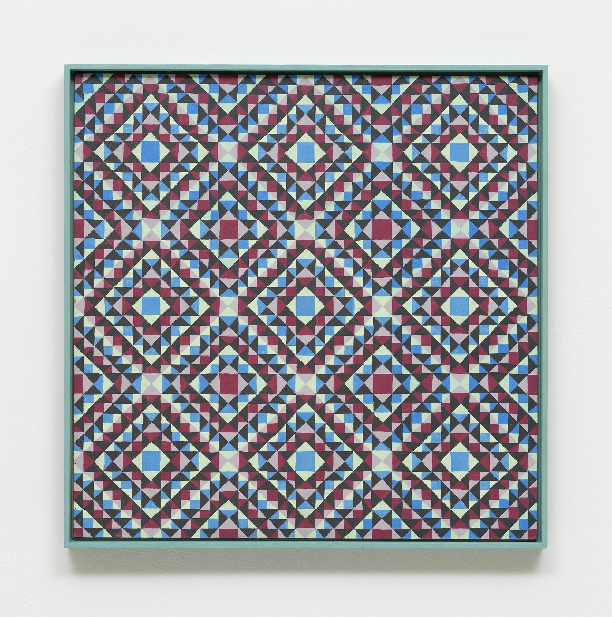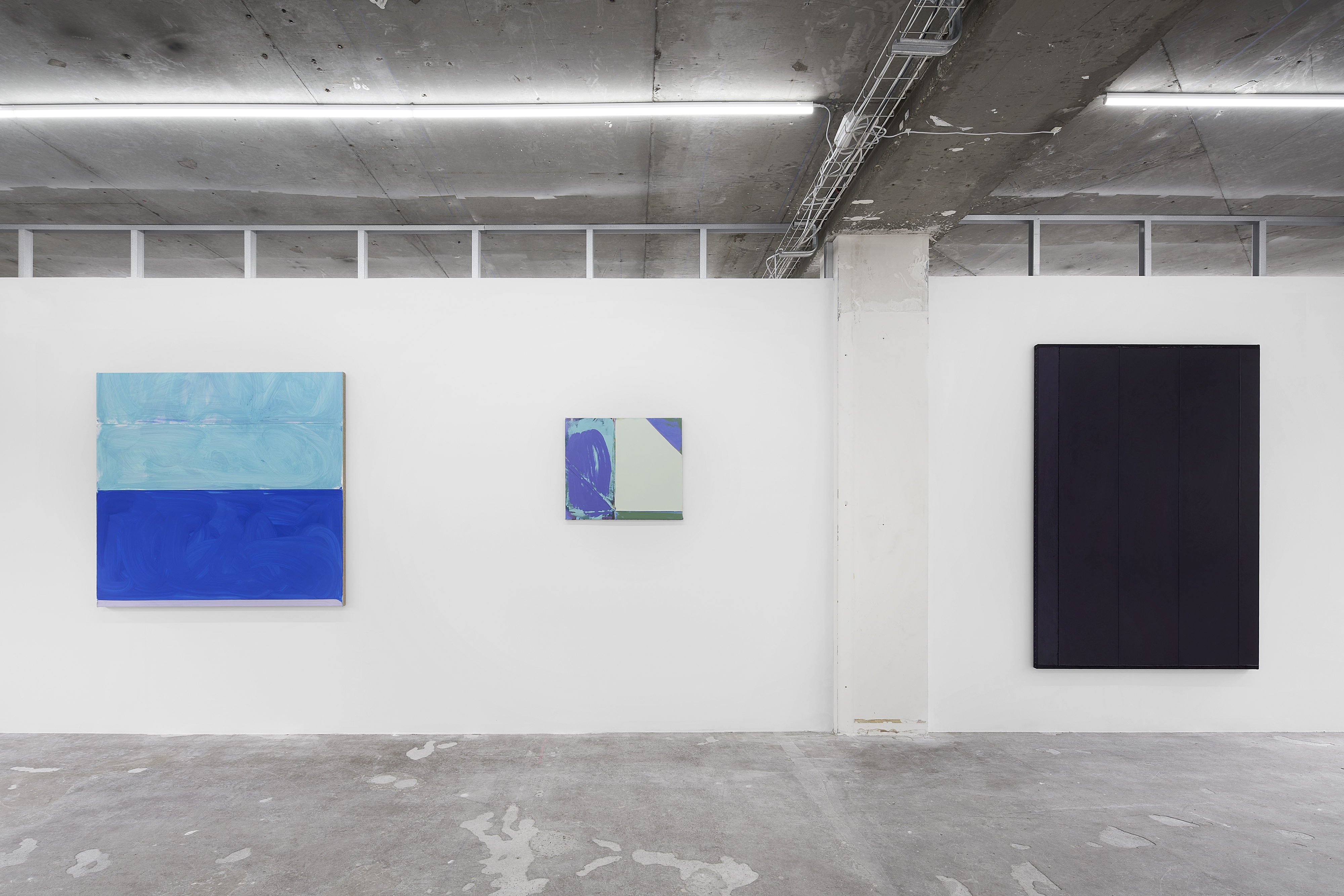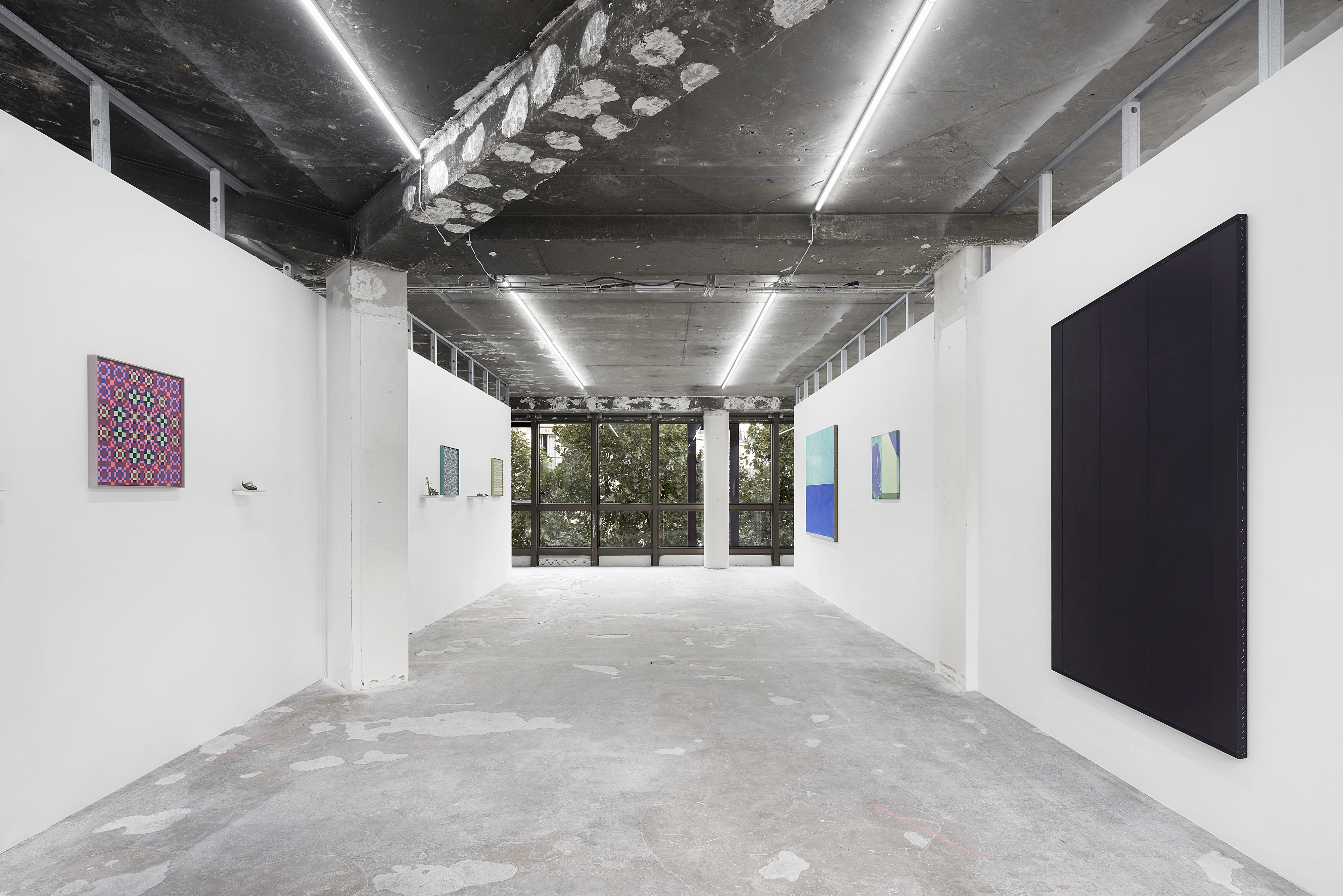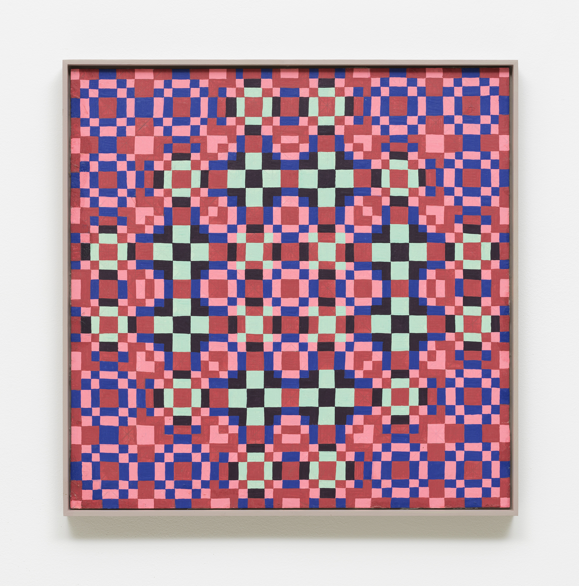 Bureau is pleased to present two longstanding artists of the gallery, Matt Hoyt and Julia Rommel. Each will have an autonomous presentation on facing walls. Hoyt will show a suite of grid-patterned paintings alongside recent small sculptures. Hoyt’s handmade objects are strange and fascinating, conjuring many forms from variously tinted spikes, spheres and many as-yet unnamed shapes from an imagined future or alternate past. Hoyt’s paintings provide a rhythmic presence grounded in geometry, pattern and order, however they bear the delicate traces of imperfection from the artist’s hand. Hoyt cites the primary inspiration and influence for the paintings as the archetypal power of the grid as employed by many cultures, particularly Latvian folk designs, Navajo weaving and American barn quilts, and likely going back to prehistoric times. Rommel will present three new paintings in shades of blue. One powerful, vertical work, Bride revisits Rommel’s formative dark monochrome paintings, in an inky, almost-black indigo. A horizontal work, Zanzibar banded with turquoise and lapis could suggest a seascape horizon. There is a structural, pragmatic quality to Rommel’s paintings. We see how they are built, layered, rubbed, smoothed, folded, unfolded and stapled together, bearing the traces that have become Rommel’s signature style. The traces of construction are inscribed into each painting’s surface: the deep grooves and creases describe the complex history of each work’s making.