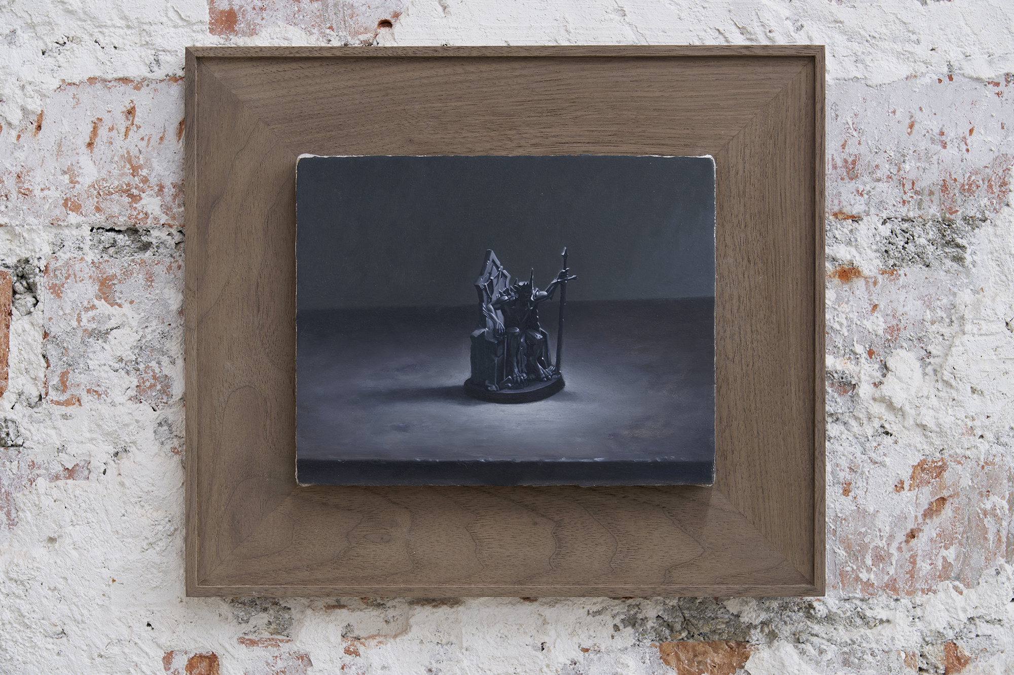 Bureau is pleased to participate in Paris Internationale 2023 with a solo project by New York artist, Ian Miyamura (b. 1991 Kailua, Hawaii). Miyamura will present a suite of recent paintings from several of his disparate series showing the scope of his varied practice. Included in the booth are his meticulous and focused still life paintings of unpainted Warhammer miniatures, vast skyscapes featuring optically flattened, soaring seabirds, text paintings cleverly disguised in abstract expressionist stylings, and a pair of strange relatives in the form of checkerboard grids. Each series has its own style, executed with careful technique and conscientious attention to the different historical modes that each series references. Miyamura talks about his use of style as a sort of study in mimesis, each approach is implemented as a cloak of genre and technique. His broad range brings us from the gravity of the horizontal plane where gray miniatures rest on tabletops, highlighted by raking studio light, to the limitless, dusky skies where the gulls glide. The grid and text works are situated in the realm of logic and, for that matter, riddle. With their shift away from the imaginative pictorial space, they are a reminder of the essential materiality of a painted image, and a necessary return to the surface.
